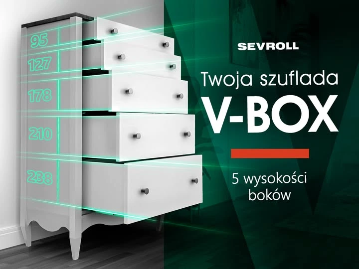 • Organizare Eficientă: Sertarul V-Box facilitează o organizare optimă a spațiului, fiind ideal pentru bucătării sau dormitoare.